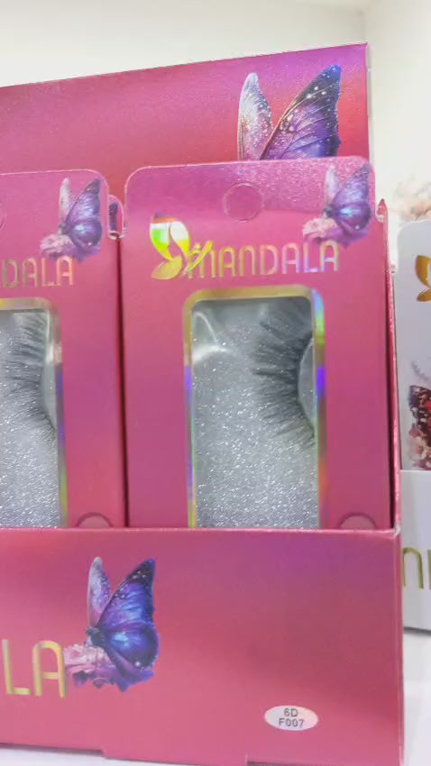 1 Box Expositor com 12 caixinhas individuais de cílios postiços Mandala 6D.